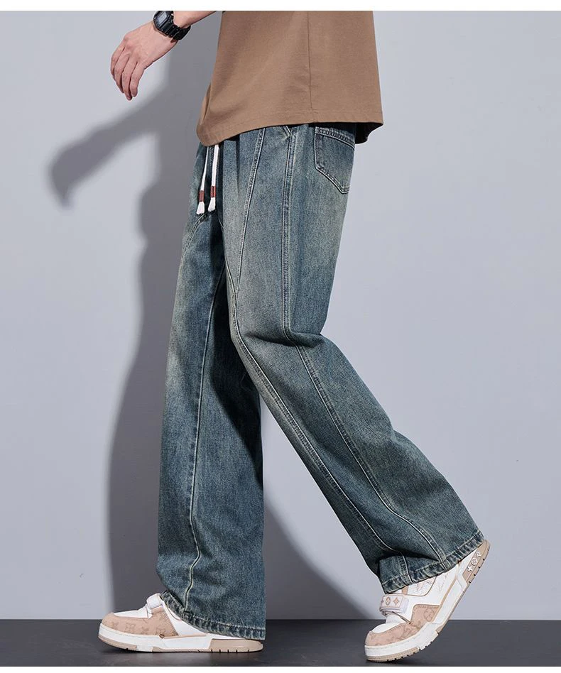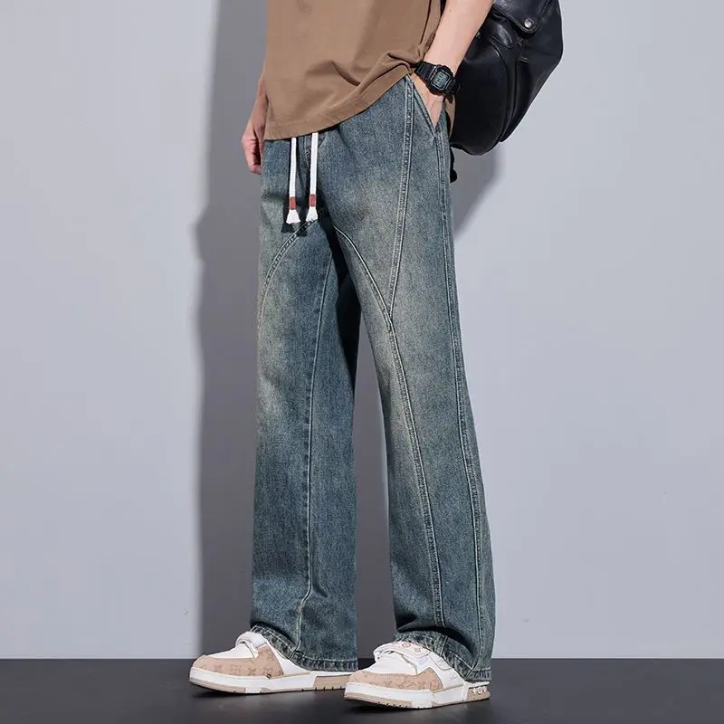 High Quality Hipster All-Flared Elasticated Denim Mopping Pants Loose and Customizable Jeans