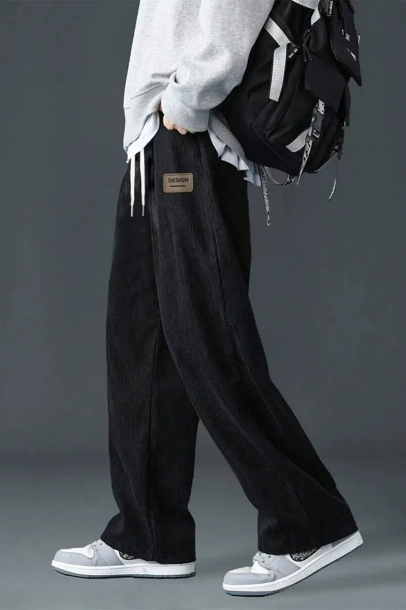 new style Men's corduroy loose European size hanging multi-functional casual straight leg pants, suitable for daily travel