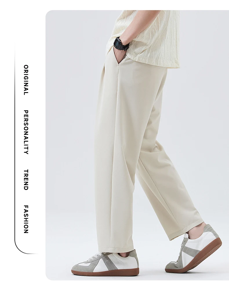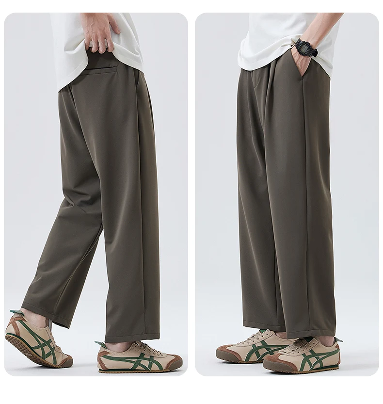 Spring Summer Casual Pant Men Elastic Waist Loose Casual Wide Leg Ankle-length Suit Pant Man Vintage Baggy Pants Trousers
